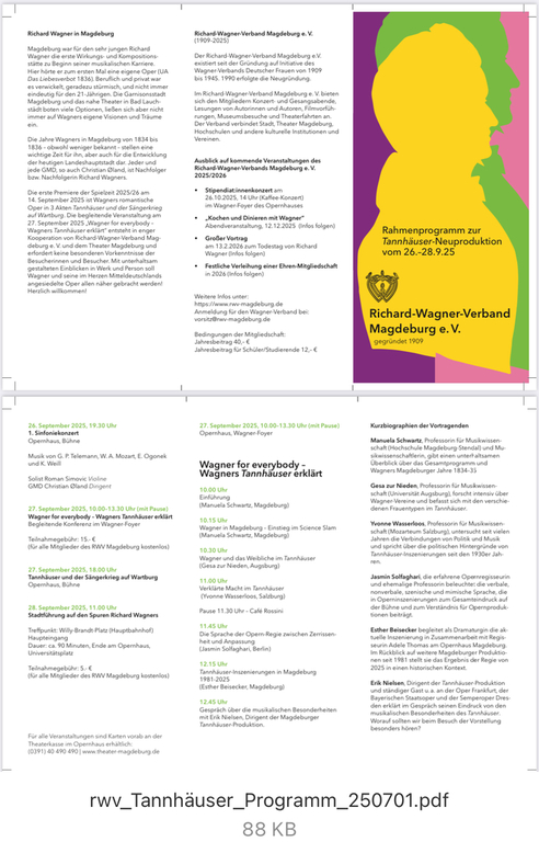 with: Ivonne Fuchs, Klaus Florian Vogt (29.3.), Roman Payer, Andreas Hörl, Tómas Tómasson, Alejandro Marco-Buhrmester, Wilhelm Schwinghammer, Alina Behning, Taryn Knerr, Pawel Jeka, Paul Kaufmann, Benedikt Lutz, Ferdinand Dehner, Margaret Rose Koenn, Viktorija Narvidaité, Vera Maria Ritter, Rebecca Davis.