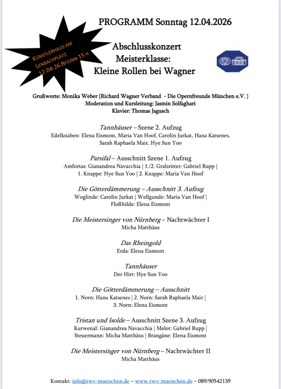 Am 12.4. wird das Gelernte in Form eines Konzerts für den Richard-Wagner-Verband München präsentiert.